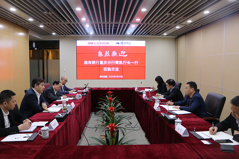 2月25日,金科控股集團總裁趙勐、副總裁歐建成、首席風險官楊東升與到訪的渤海銀行重慶分行黨委書記、行長黃凱,副行長羅津一行舉行交流會談。